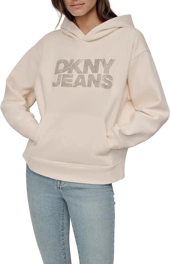 Ta bluza DKNY X-Small Tops w kolorze czarnym, Standard Women's Jeans Tops to ciepła bluza z polaru w modnym stylu rhinestud