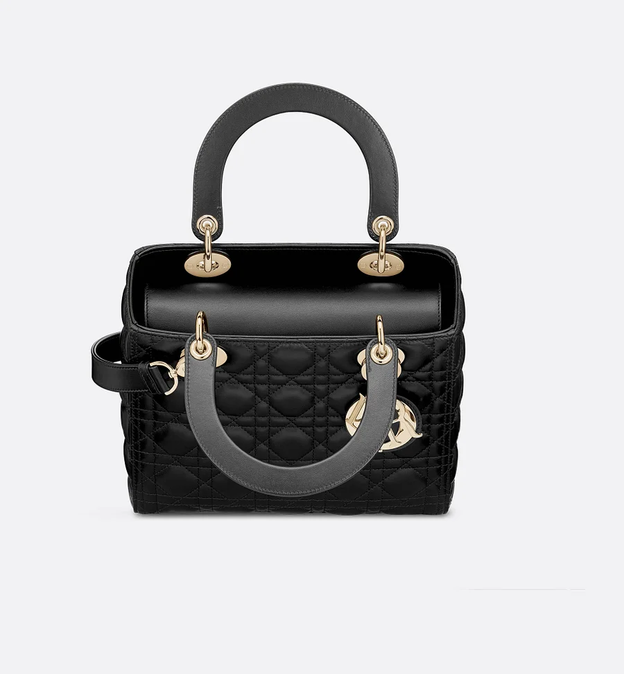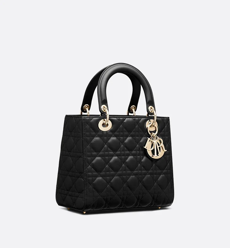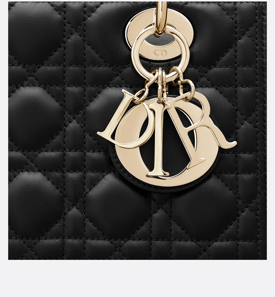 Torba Lady Dior jest uosobieniem wizji elegancji i piękna Domu. Elegancka i wyrafinowana, ponadczasowa kreacja jest wykonana z czarnej jagnięcej skóry ze szwami Cannage, tworząc natychmiast rozpoznawalną pikowaną teksturę. Bladozłoty metal uroki oferują elegancki urok. Średnia torebka Lady Dior z cienkim, odpinanym skórzanym paskiem na ramię może być noszona w dłoni lub na skos.