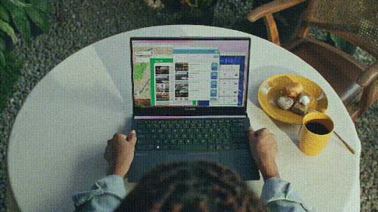 Elastyczność pracy na wielu ekranach — znajdź tryb, który najlepiej odpowiada Twoim zadaniom i płynnie przełączaj się między nimi. Rozszerz swoją przestrzeń roboczą dzięki trybowi dwóch ekranów lub komputera stacjonarnego, łatwo udostępniaj treści w trybie udostępniania lub skonsoliduj wszystko na jednym urządzeniu w trybie laptopa. Podwójne 14-calowe wyświetlacze OLED ASUS Lumina - Podwójne wyświetlacze dotykowe 16:10 Zenbooka DUO charakteryzują się rozdzielczością 2880 x 1800, żywą jasnością szczytową HDR na poziomie 500 nitów, płynną częstotliwością odświeżania 120 Hz i 100% kolorami DCI zweryfikowanymi przez Pantone. niezrównane efekty wizualne.